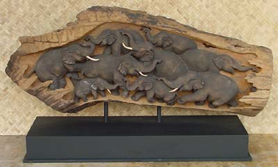 Scultura con 9 elefanti in Teak c/piedistallo - 48223