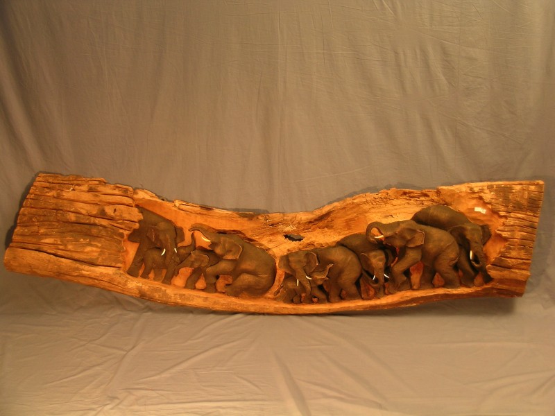 Scultura con 9 elefanti in Teak d'appendere - 49006
