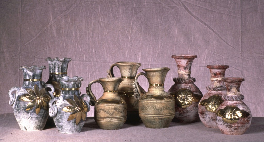 Tris vasetti grandi con ottone