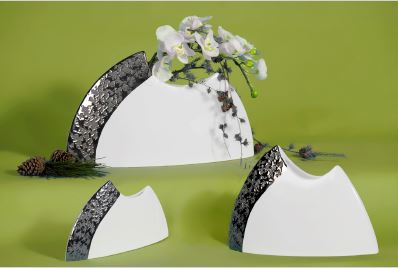 Tris vaso schiaccito bianco/platino
